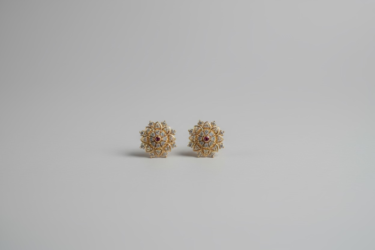Style: The combination of the deep red center and the tiered floral arrangement gives these studs a royal, antique aesthetic.
