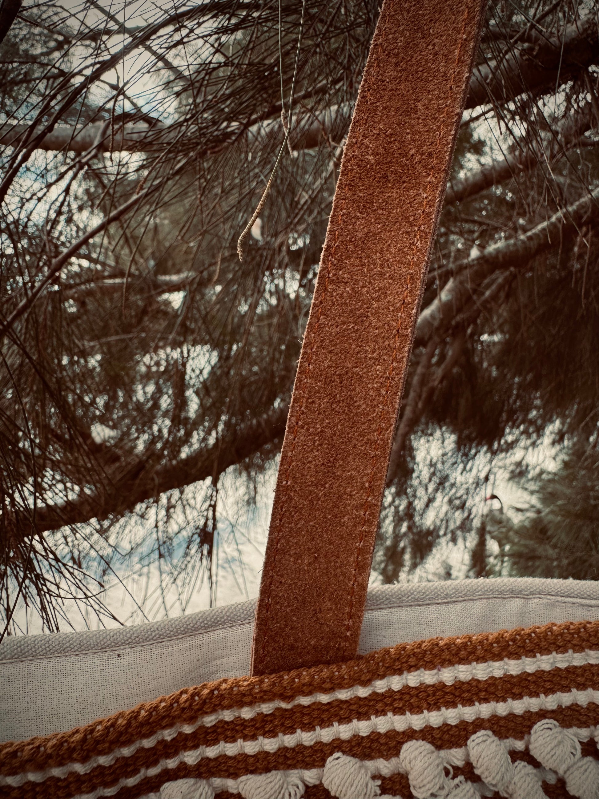 Introducing our exquisite Handmade Woven Cotton Tote – a spacious and eco-friendly essential crafted with care. The unique textured weave, accented by rich leather straps and a secure magnetic snap closure, elevates everyday elegance. Made with sustainable cotton, this generously sized tote offers ample room for all your belongings while making a positive impact. Embrace natural beauty and practical design in one stunning bag.